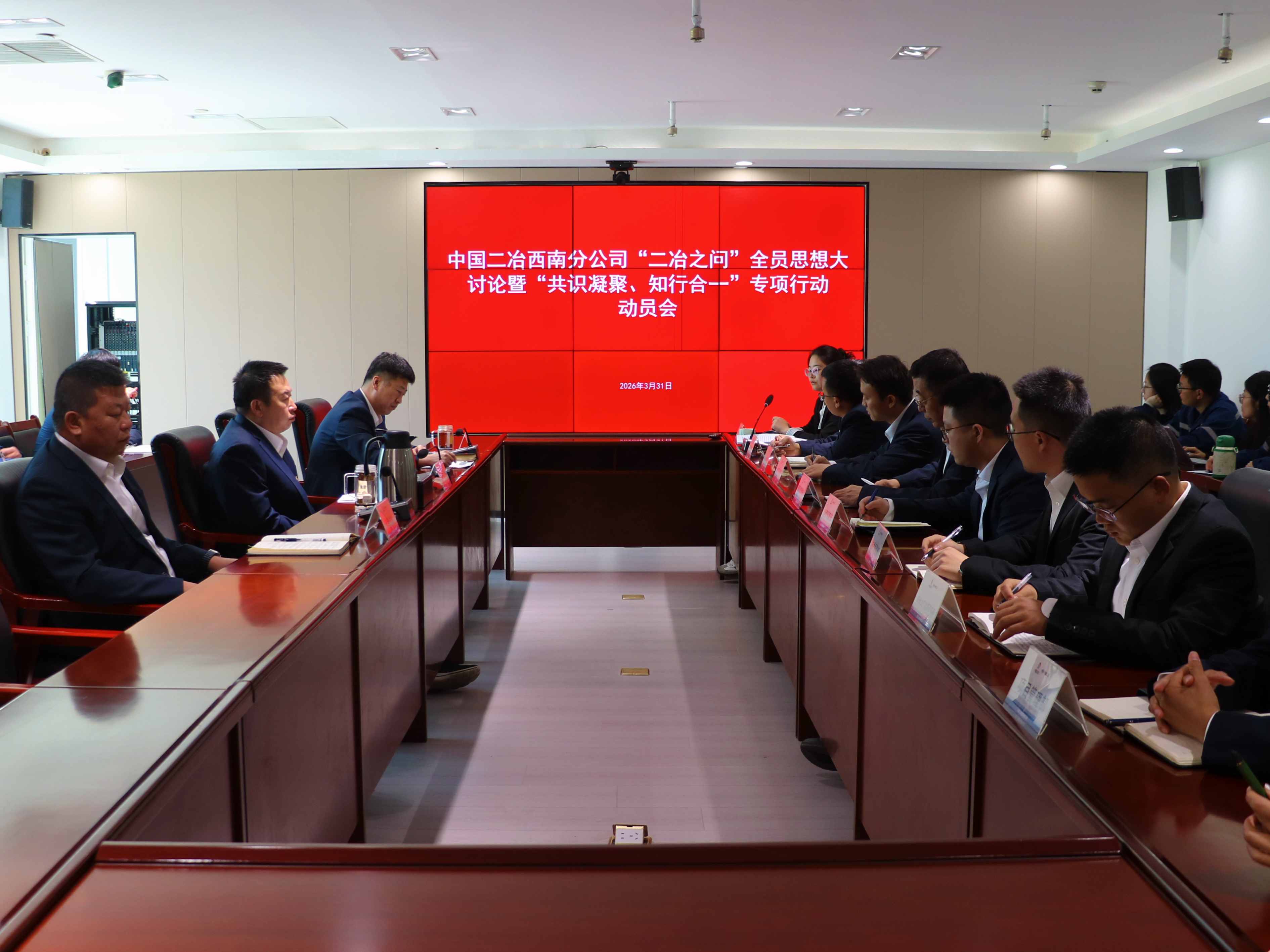 3月31日,四川分公司召開(kāi)“二冶之問(wèn)”全員思想大討論暨“共識(shí)凝聚、知行合一”專項(xiàng)行動(dòng)動(dòng)員會(huì)。會(huì)議學(xué)習(xí)了習(xí)近平總書(shū)記關(guān)于樹(shù)立和踐行正確政績(jī)觀的重要論述,分公司黨委書(shū)記、總經(jīng)理鮑文明作動(dòng)員講話并提出工作要求,分公司副總經(jīng)理高鵬程傳達(dá)《答好“二冶之問(wèn)”勇?lián)鷷r(shí)代使命——致全體二冶人的一封信》,并解讀“二冶之問(wèn)”與“五大核心共識(shí)”。