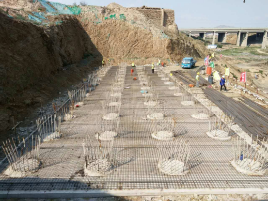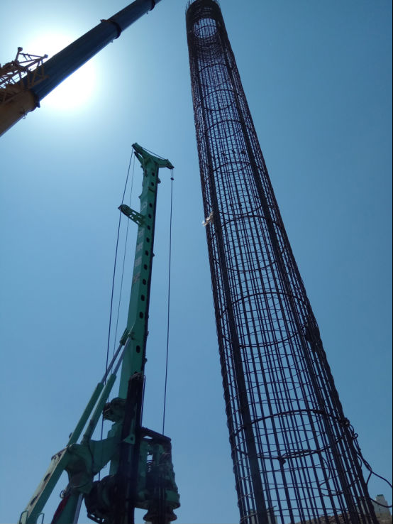 項(xiàng)目施工者秉承“聚焦中冶主業(yè),建設(shè)美好中冶”發(fā)展愿景根據(jù)工程特點(diǎn),優(yōu)化施工工藝。以“安全責(zé)任,重于泰山”為己任,克服施工作業(yè)面小,地層堅(jiān)硬等原因,在樁基部分采用人工挖孔施工,沖擊鉆施工和旋挖鉆多種方式配合施工大幅度提高了施工效率,降低了施工成本,加快了施工進(jìn)度。樁基鋼筋籠施工時(shí),采用汽車吊大小鉤配合動(dòng)滑輪作業(yè),克服了整節(jié)鋼筋籠重、長的施工難點(diǎn),改進(jìn)鋼筋籠分節(jié)安裝施工工藝,采用無分節(jié)施工工藝,全部采用平焊,無對(duì)接段的立焊,提高了焊縫的質(zhì)量,節(jié)約了時(shí)間,提高生產(chǎn)效率,加快施工進(jìn)度。在承臺(tái)、拱座及立墻結(jié)構(gòu)大體積混凝土施工時(shí),分別采用外敷草簾灑水,內(nèi)通冷卻水管降溫的施工工藝,保證混凝土澆筑后的養(yǎng)護(hù)條件。項(xiàng)目全體參戰(zhàn)職工發(fā)揚(yáng)“一天也不耽誤,一天也不懈怠”樸實(shí)厚重的中冶精神,群策群力,積極參與施工方案與施工工藝的設(shè)計(jì)與編制工作,集思廣益,針對(duì)各工序的施工難點(diǎn)編制專項(xiàng)施工方案,攻克技術(shù)難關(guān),各項(xiàng)施工方案逐個(gè)完善。樁基工程按照施工方案,精準(zhǔn)放樣——鉆孔——清孔——鋼筋籠安裝——水下混凝土澆筑連續(xù)施工。樁基施工完畢后,進(jìn)行土方開挖,樁頭混凝土鑿除,樁基完整性檢測,地基驗(yàn)槽,墊層澆筑、承臺(tái)及拱座結(jié)構(gòu)施工。各工序緊密銜接,五個(gè)承臺(tái)流水作業(yè),實(shí)現(xiàn)高效生產(chǎn),保證施工工期。
