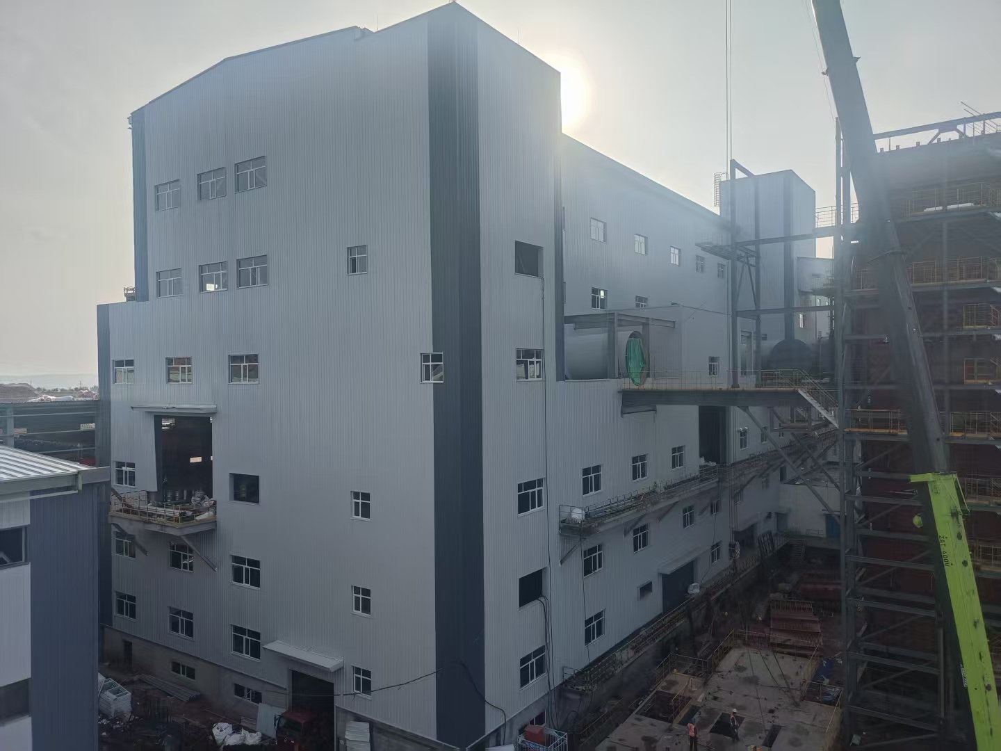 匯能硅鋁項目緊扣國家“雙碳”目標,將綠色理念融入發(fā)展實踐,持續(xù)探索以生態(tài)“含綠量”撬動發(fā)展“含金量”。其中,礦熱還原工程建筑面積4891平方米,長146米,寬33.5米,高45米,六層鋼結(jié)構(gòu),是本項目最大的主廠房。施工過程中,針對礦熱還原工程施工戰(zhàn)線長、混凝土澆筑體量大、施工工藝復(fù)雜等攔路虎,項目部團隊提前優(yōu)化施工組織設(shè)計和施工方案,強化質(zhì)量巡檢、材料進場檢驗、安全每日監(jiān)管頻率,通過分區(qū)突擊、“土建+專業(yè)”工序有效銜接、增派專業(yè)隊伍、實施進度日考核等舉措,集中優(yōu)勢資源攻堅推進,確保礦熱還原基礎(chǔ)在26天內(nèi)完成,主體結(jié)構(gòu)177天完成,跑出施工加速度。在此基礎(chǔ)上,項目部搶抓黃金施工期,節(jié)假日不停步,提前完成二次維護、裝飾裝修等關(guān)鍵節(jié)點,土建工程就此全面完成。