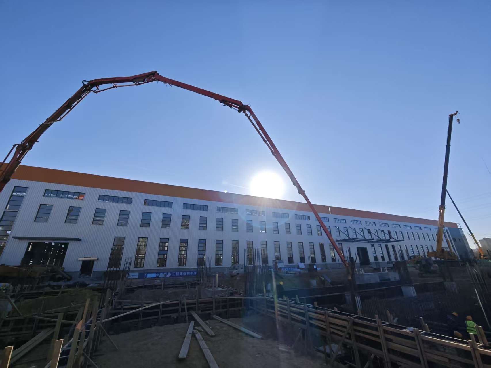 工程自10月10日進(jìn)入二次維護(hù)結(jié)構(gòu)封閉施工以來(lái),項(xiàng)目部200余名建設(shè)者克服有效工期縮短、車間跨度大、包頭地區(qū)降雨頻繁等不利條件和施工難題,采取“分區(qū)分軸流水作業(yè)+24小時(shí)輪班制”施工方法,頂酷暑,斗強(qiáng)風(fēng)、冒嚴(yán)寒,掀起大干熱潮,僅僅用41天完成二次結(jié)構(gòu)砌筑、彩板及門窗安裝、大型屋面彩板拼裝等施工任務(wù),工程就此完成全部封閉任務(wù)。
