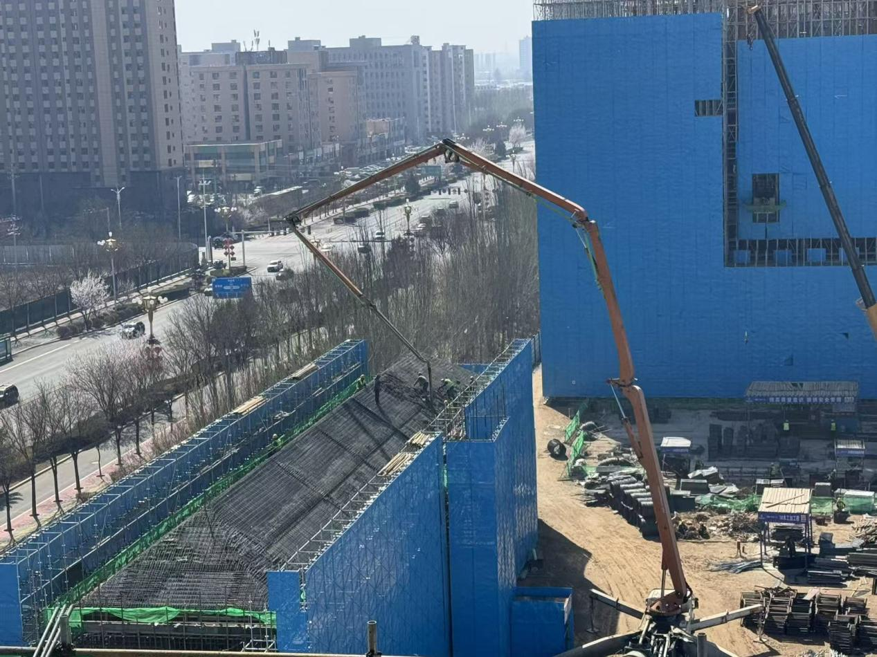 在質(zhì)量管控上,項目團隊精益求精,嚴格控制鋼筋間距、保護層厚度等關(guān)鍵參數(shù),采用雙層雙向配筋體系強化結(jié)構(gòu)受力。針對大坡度混凝土澆筑難題,選用低坍落度混凝土,優(yōu)化“先低后高、分層推進”的澆筑順序,有效解決了混凝土下滑問題,保障了結(jié)構(gòu)成型質(zhì)量。安全是施工的底線。項目部全面落實高處作業(yè)安全管控要求,完善腳手架、安全網(wǎng)等防護設(shè)施,安排專人全程旁站監(jiān)督,實現(xiàn)澆筑過程“零事故”。同時,統(tǒng)籌協(xié)調(diào)混凝土供應(yīng)、現(xiàn)場施工與設(shè)備保障,各環(huán)節(jié)緊密銜接,連續(xù)高效澆筑,圓滿完成節(jié)點目標。