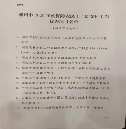 4月14日,中國(guó)二冶鋼構(gòu)分公司湖南永興一中項(xiàng)目獲得2020年度湖南省郴州市保障農(nóng)民工工資支付工作優(yōu)秀建設(shè)項(xiàng)目榮譽(yù)稱(chēng)號(hào)。