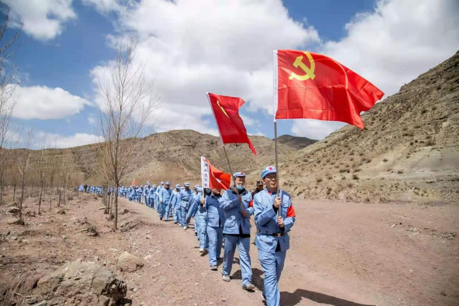 在大青山作戰(zhàn)司令部,大家面對(duì)黨旗和團(tuán)旗,莊嚴(yán)宣誓,在濃厚的儀式氛圍中,堅(jiān)定對(duì)黨忠誠的信念;在紀(jì)念館,一個(gè)個(gè)鮮活生動(dòng)、印象深刻的歷史人物與事件,使大家重溫歷史,牢記初心使命;在“行軍”路上,大風(fēng)陣陣,道路崎嶇,大家引吭高歌,一首首紅色歌曲,升華了對(duì)黨和國家的深厚情感;在終點(diǎn)順利“會(huì)師”,感受歷經(jīng)磨難后勝利的喜悅。