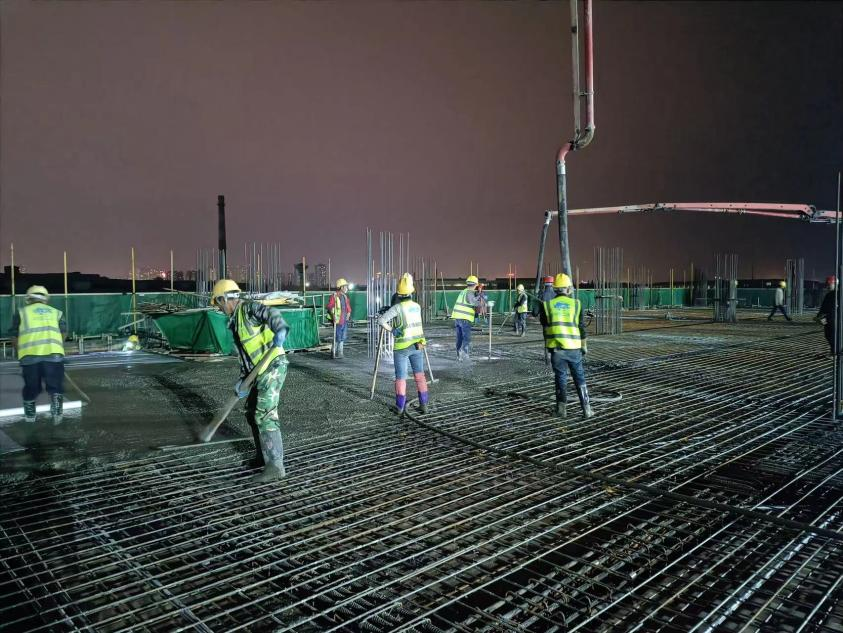 冬雨淅淅瀝瀝、滴滴答答落下,飄飛在清冷的夜空,輕輕地滑落在綿陽經(jīng)開區(qū)生物醫(yī)藥產(chǎn)業(yè)園項目施工現(xiàn)場。建設(shè)者們頂著寒風(fēng),在施工現(xiàn)場來回穿梭,他們在各自的崗位上繁忙作業(yè),機械的轟鳴聲、工作人員的吆喝聲不絕于耳,施工現(xiàn)場熱鬧非凡。據(jù)了解,該項目一方面把施工建設(shè)任務(wù)分解到周、安排到天、具體到點,明確責(zé)任單位和責(zé)任人,另一方面搶抓晴好天氣,充分發(fā)揮協(xié)同作戰(zhàn)精神,優(yōu)先保障資源配置,加大人力物力投入加快進度。在保證安全及不擾民的前提下協(xié)調(diào)各參建單位開展夜間施工,爭分奪秒搶抓進度。同時,為克服夜間施工難度大等問題,項目部管理人員總結(jié)夜間施工經(jīng)驗,通過增加照明設(shè)施、增加夜間巡查頻率等方式,確保夜間施工質(zhì)量。該項目安全副經(jīng)理每晚都在施工點位進行安全巡視,查看設(shè)施設(shè)備是否已擺放整齊,施工設(shè)備是否已達到安全運行狀態(tài),工人操作是否安全規(guī)范。嚴(yán)格落實安全生產(chǎn)責(zé)任制,切實加強施工管理,不斷強化工程質(zhì)量,搶出時間、搶出進度、搶出工期,為項目部大干快上提供堅實保障。