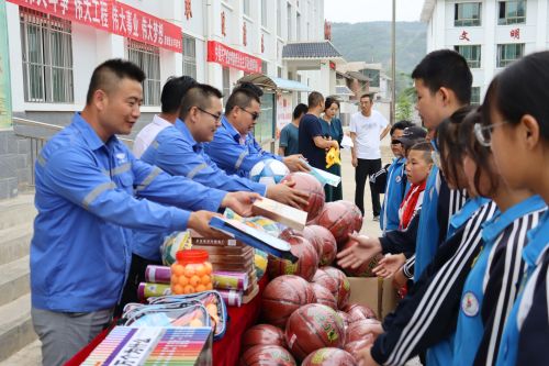 景禮項(xiàng)目黨支部為禮縣崖城鎮(zhèn)九年制學(xué)校送去了書籍、籃球等體育用品和學(xué)習(xí)用品,并鼓勵(lì)孩子要汲取力量,樹立信心,做一個(gè)臉上有笑容、心中有陽光的孩子,用一顆感恩的心、以優(yōu)異成績(jī)回報(bào)父母,回報(bào)社會(huì)。